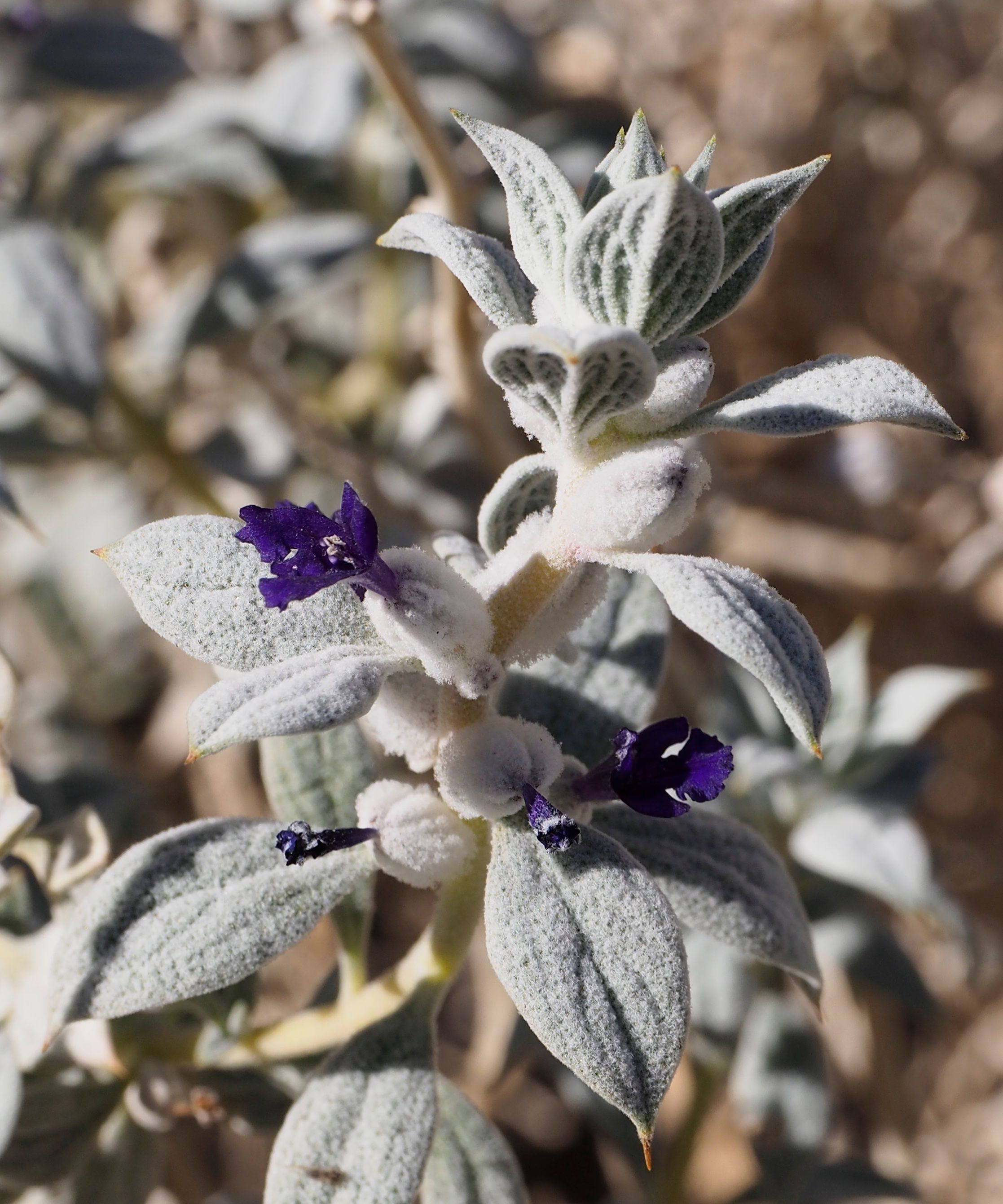 沙漠裡開出紫色的野花。