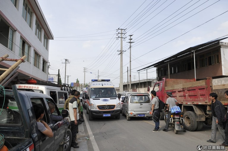 救援物資、救難團隊、想要傳達消息的媒體通通都塞在進入災區的要道上。ChinaFotoPress/Getty Images