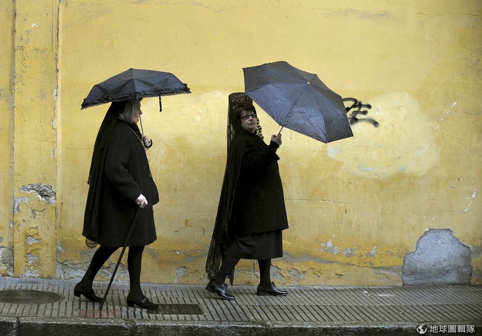奧維耶多(Oviedo)市內,參加棕樹節(Palm Sunday)的信眾一身黑走在大街上,當地的學生會決定今年懺悔活動不能在街上舉辦,所以民眾改往教堂走去。這個節日是要記念主耶穌進入耶路撒冷城。