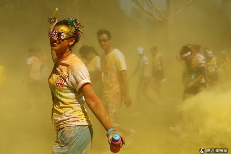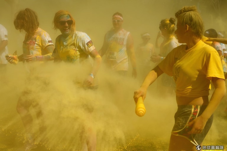 直白地用「色彩路跑」(The Color Run)當名稱的國際活動中,主辦單位只要求參賽者「記得穿白T」,因為當你每跑1公里時,路旁的工作人員就會把1種顏色的粉末往你身上潑,所以當你完成5公里路跑後,身上就是滿滿的繽紛色彩和完成路跑的快感!