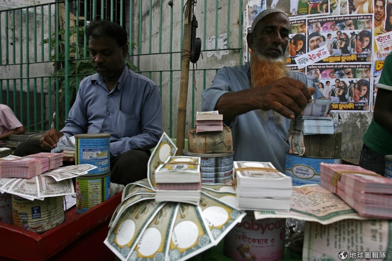 在孟加拉街頭,常常可以看到讓民眾舊鈔換新鈔的小販,代價是一點點手續費。