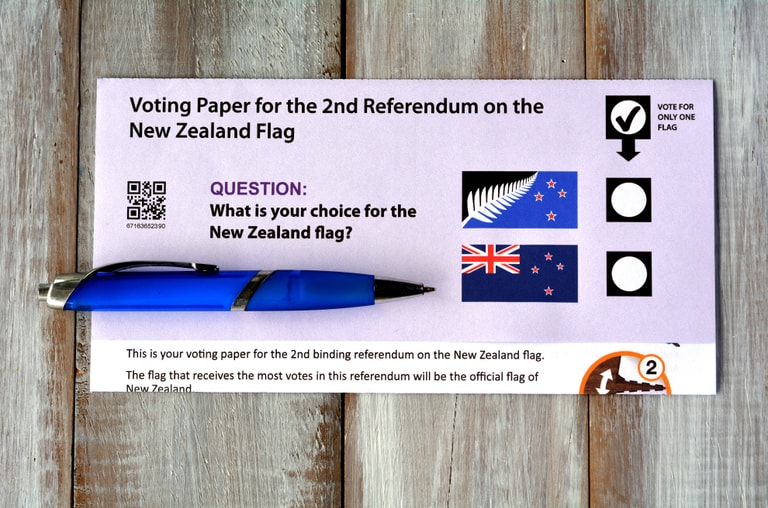 2015年5月,紐西蘭成立 12人小組負責徵選各地提交的新旗設計,他們總共收到了上萬件圖樣,最後旗面上帶有紐西蘭精神象徵──銀蕨(Silver Fern)圖案的設計出線,和原來的舊國旗一起交付人民公投。