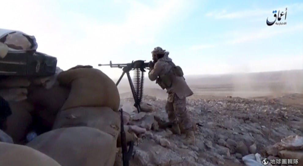 古城帕米拉(Palmyra)城外,伊斯蘭國戰士瞄準遠處開槍中。近日,敘利亞政府軍不斷進逼位在帕米拉當地的伊斯蘭國陣營。帕米拉在 2015年時遭到伊斯蘭國嚴重破壞,他們先是斬首不願供出古文物存放地的考古學者哈立德,之後又炸掉擁有 2,000年以上歷史的神廟,一連串的消息讓各界感到震驚與難過,主掌敘利亞古蹟的首長阿布杜卡林(Maamoun Abdulkarim)說:「我們最糟的想像很不幸地成真了。」
