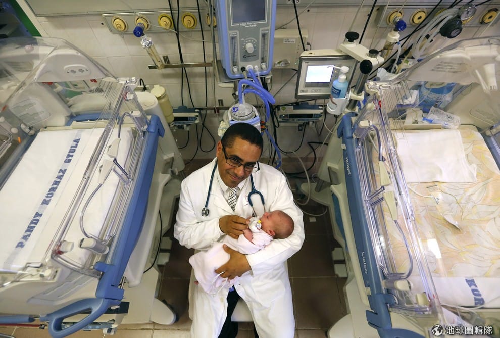 葉門籍的匈牙利醫生阿布杜拉伯(Mohamed Abdulrahman Abdulrab)抱著新生寶寶拍照,他被選為本年度最佳醫生。