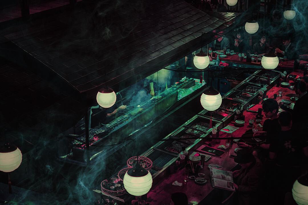 網友Liam Wong六本木之丘,在串燒冒出的蒸騰煙霧中。