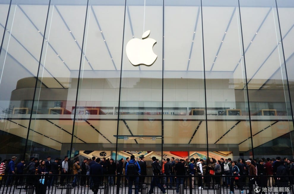 中國杭州市的蘋果專賣店,民眾排起長長的隊伍等著買新上市的iPhone SE。