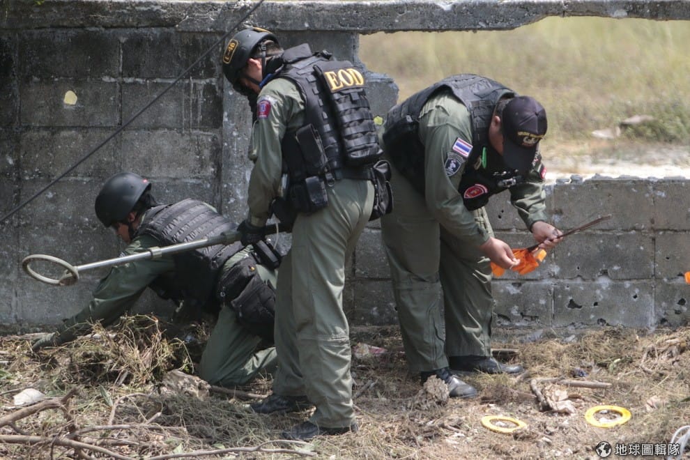 泰國軍人在炸彈爆炸現場進行調查。根據報導,泰國南部的也鄰縣(Yaring district)在 30號深夜與 31號凌晨發生一連串爆炸,造成 5名警察受傷。爆炸地點分別是縣政府周圍、農業銀行、農業合作社、泰國政府儲蓄銀行的提款機、郵局。