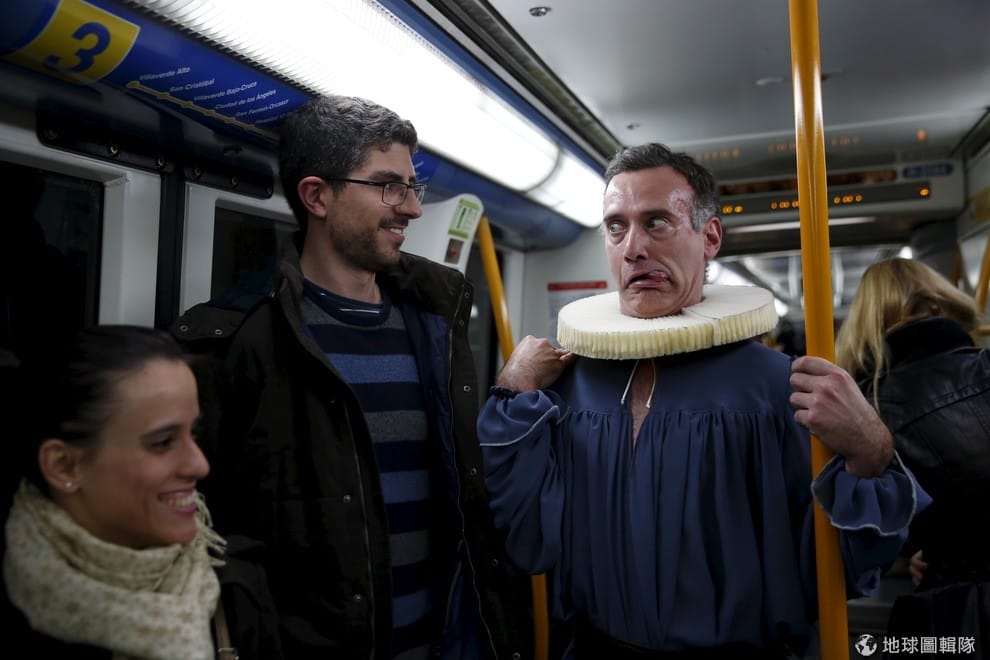 烏加德(Ivan Ugalde)正在表演著名西班牙作家賽凡提斯(Miguel de Cervantes)的小說片段,賽凡提斯是西班牙現代文學之父,最知名的作品就是描寫瘋癲騎士的《唐吉訶德》。法可托莉亞劇院(Factoria Teatro)為了紀念賽凡提斯過世 400週年,在捷運上表演德賽凡提斯的小說片段給乘客看。