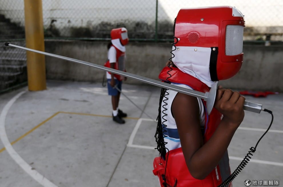小朋友正在上劍術課。在巴西當地,大部分人瘋狂的運動是足球,西洋劍很少有人知道,為了推廣劍術,國際劍術協會(International Fencing Federation)和巴西單位合作,於今年 3-4月在 40所公立學校舉辦劍術課程,喚醒小朋友對劍術的喜愛,迎接即將在巴西舉辦的夏季奧林匹克運動會。