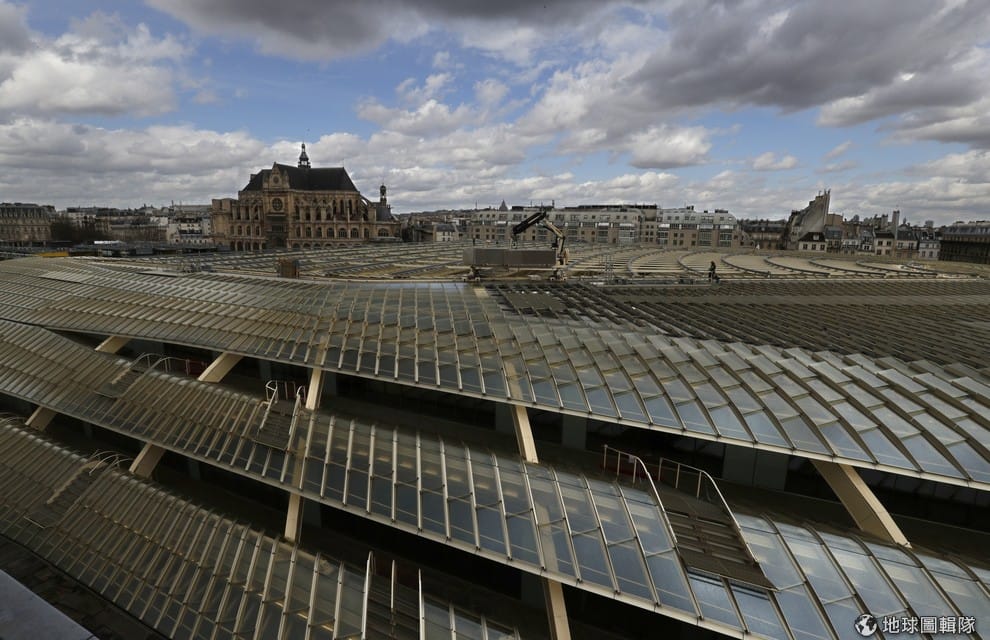 照片中是巴黎大堂區(Les Halles)的天篷購物中心(La Canopee)。天篷有著波浪般起伏的大片屋頂,由法國建築師安祖堤(Jacques Anziutti)與柏格(Patrick Berger)設計,現在經過 6年的建設終於要在 5號時正式開幕,未來這裡將會成為巴黎的新文化中心與購物中心。