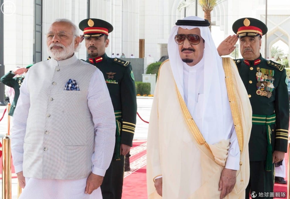 印度總理莫迪(左,Narendra Modi)和沙烏地阿拉伯國王沙爾曼(右,Salman)合照。根據報導,莫迪在 2號抵達沙烏地阿拉伯進行 2天的訪問之旅,並在這趟旅程中簽下了一份備忘錄,跟沙國約定要交換洗錢、恐怖主義資金和犯罪相關金錢活動的訊息。此外,備忘錄也提到印度和沙國要一起打擊恐怖主義、分享情報、增強情報共享能力,以及加強雙方在打擊洗錢與毒品走私等跨國犯罪的合作。