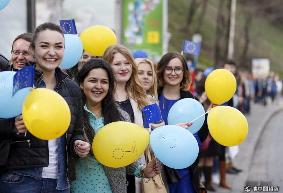 烏克蘭學生參加快閃活動,支持烏克蘭進一步加深跟歐盟的關係。根據報導,荷蘭在 6日進行一項「歐盟與烏克蘭聯合協議」(European Union-Ukraine Association Agreement)公投。聯合協議被視為是烏克蘭加入歐盟的重要關鍵,這項公投雖然沒有法律效力,但若民眾反對,將會對荷蘭政府構成一定程度的壓力,這次公投也被荷蘭輿論視為是荷蘭民眾對歐盟支持的回應。