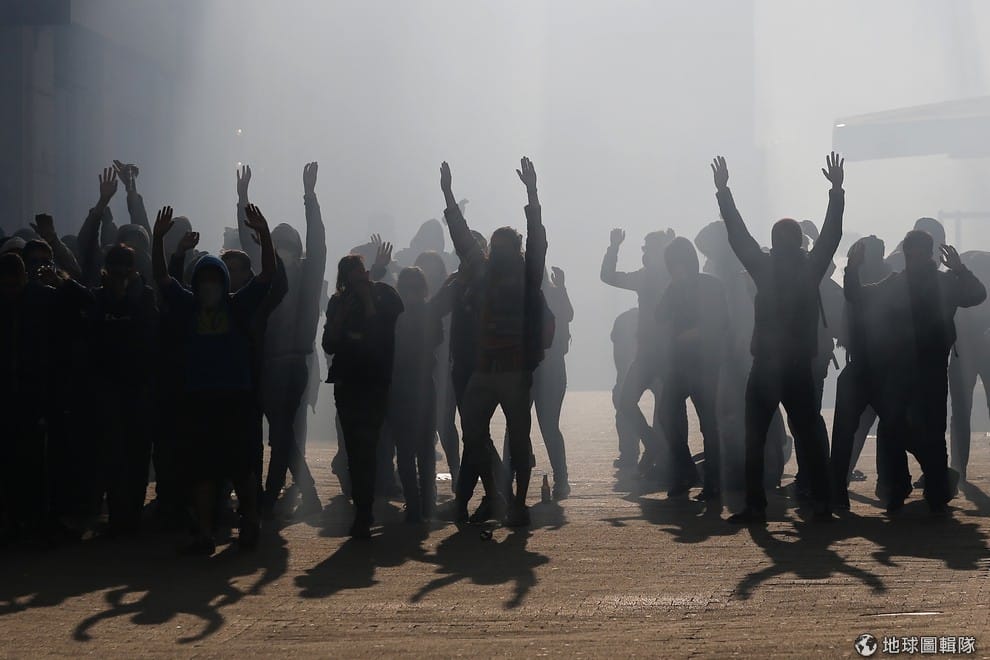 空氣中充滿了催淚瓦斯,法國警察、憲兵包圍高舉雙手的示威者。根據報導,法國學生在 5號時進行一場全國性示威,抗議勞工改革法。法國政府表示現在有必要進行改革,一旦改革後企業就會比較願意雇用勞工,當地居高不下的失業率也可以獲得改善。但憤怒的學生和工會認為,改革不但會讓珍貴的一周工時 35小時制度消失,還會讓企業可以更輕易解僱勞工。