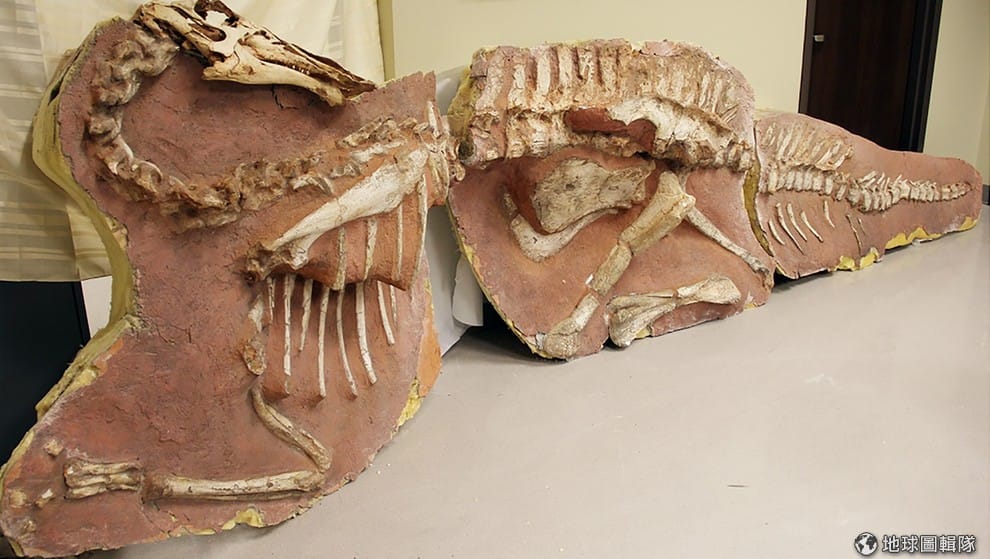 照片中是恐龍化石。美國國土安全調查局(Homeland Security Investigations)在 5號時將一批恐龍化石和其他生物的化石,歸還給蒙古政府。根據報導,美國海關之前查獲了稀有的阿利奧拉龍(Alioramus)化石,當時這批化石正準備由法國商人送到eBay拍賣,但經過查證之後發現這批化石其實不是來自法國,而是來自蒙古。