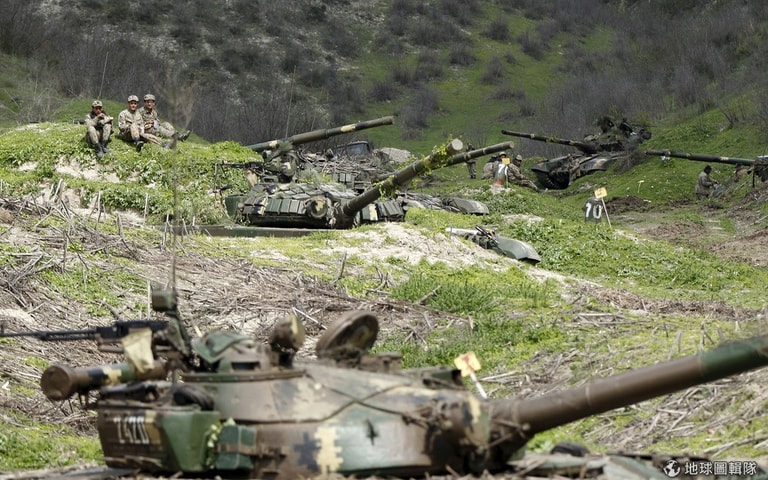 納戈諾卡拉巴克(Nagorno-Karabakh) 自治區的自衛隊軍人,在自己的崗位上休息。根據報導,納戈諾卡拉巴克位於亞塞拜然境內,自從 1994年戰爭落幕後,這個地區一直受到境內亞美尼亞族部隊與亞美尼亞共和國政府軍掌控。歐洲安全暨合作組織(OSCE)經過多年協商,在解決這項糾紛方面的進展有限。