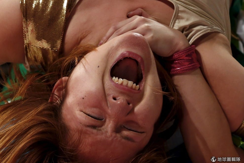 路透社原本居於弱勢的紅衣選手扛著桃紅色衣服的摔角選手繞行觀眾席,臉上的汗順著臉龐一顆顆滴落。