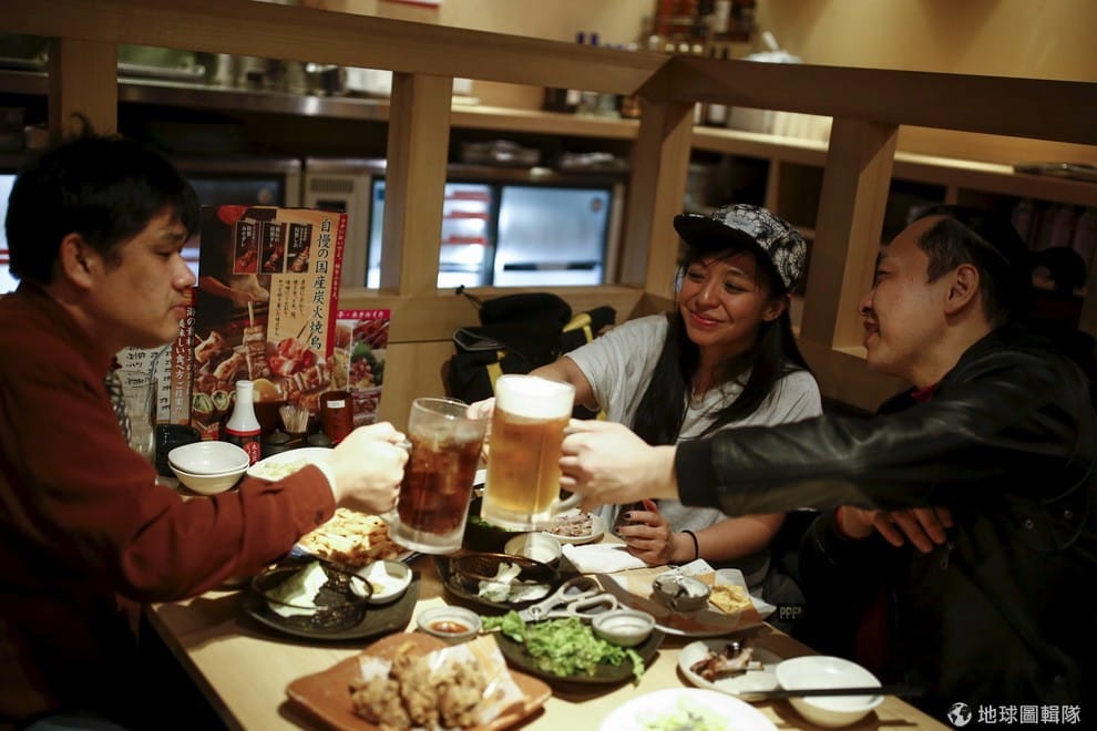 路透社私底下,女子摔角選手沃夫(中)喜歡和朋友聚會,一起大喝啤酒享受日本料理。