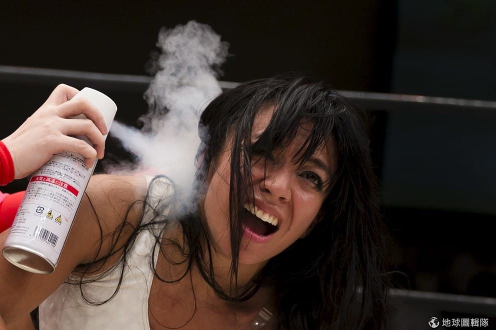 路透社在場上受傷的女子摔角選手沃夫(Kris Wolf),正在接受噴霧治療,準備再上場和對手較勁。