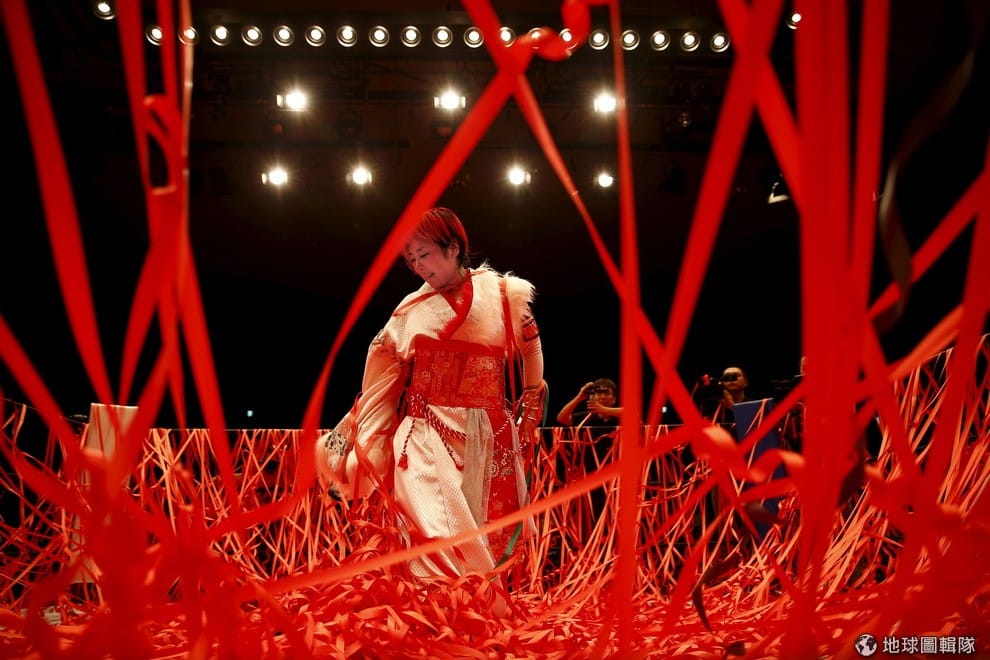 路透社在摔角台上宣布退休的選手,正在接受媒體的訪問和拍照,她的頭上落下鮮紅色的彩帶,每個人都感染現場歡樂卻又帶點感傷的氣氛。
