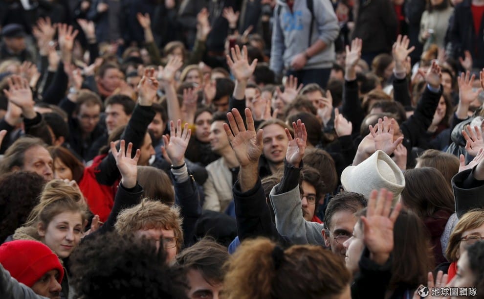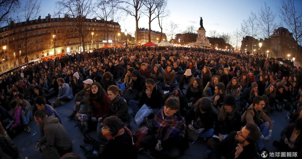 最近的巴黎夜晚很熱鬧,數千人每天晚上都來到巴黎的共和國廣場盤腿坐下,然後輪流拿麥克風討論各種社會現象,主題從逃稅、Google的主導控制地位到住房不平等各種話題都有。