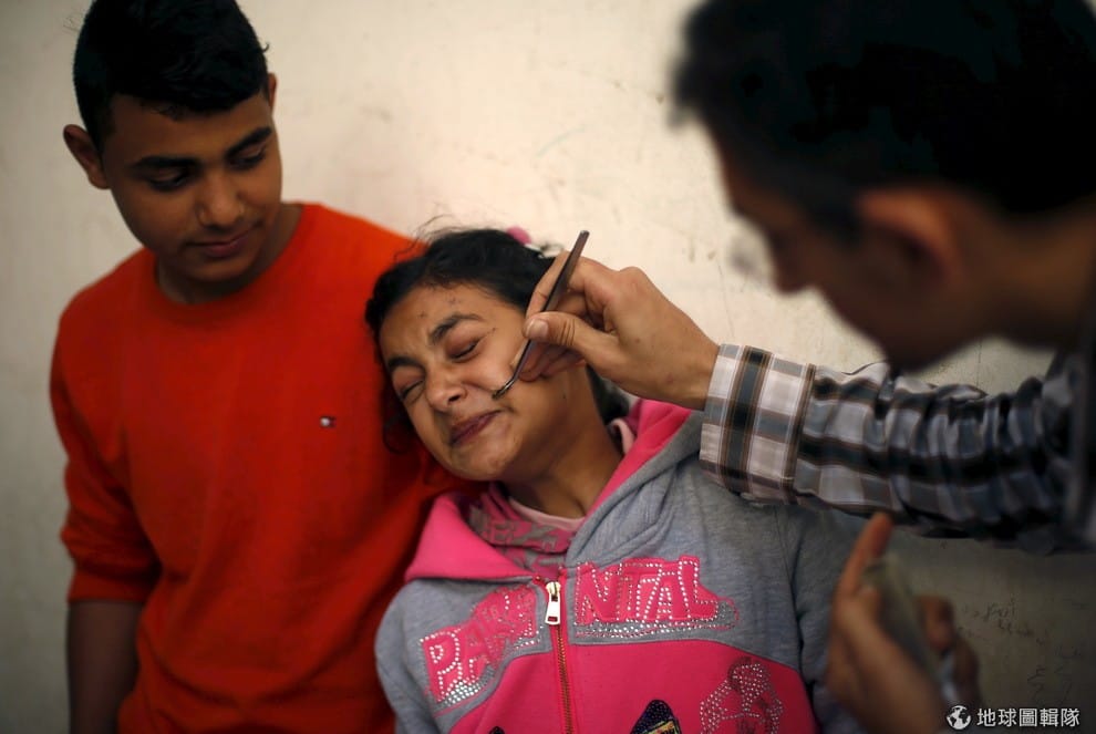 一名罹患顏面神經麻痺的女孩正在接受山穆爾(右)的蜂針治療,山穆爾雖然不是醫生,但他開了一家診所,每天大約看 250位病人,看診範圍從掉髮、腦性麻痺到癌症都有。山穆爾雖然沒有受過正規的醫學訓練,但他從 2003年的一介農業工程師苦讀自學,發明了對抗各式各樣病症的蜂針療法,蜜蜂的毒液、蜂蜜、蜂膠都是他的治療工具。