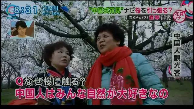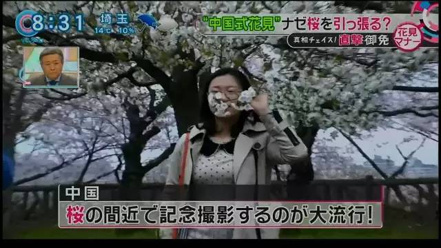 現階段,日本媒體給中國遊客的行為貼上了新標籤,他們以「中國式花見」(註:花見在日文中有賞花之意)來形容這類摘花拉枝頭來賞花的行為,這也是繼「爆買い」(指瘋狂購物)後,日本媒體給中國遊客的最新形容詞。