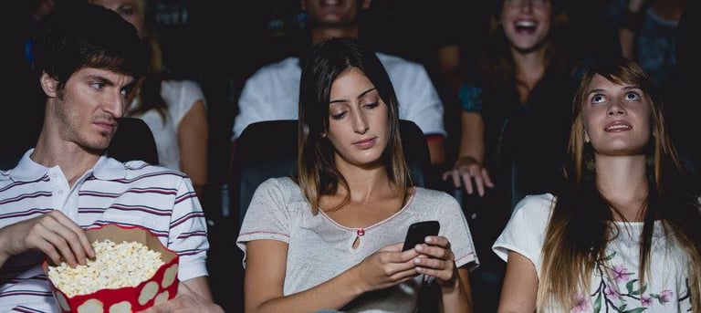 在電影院中滑手機,常常會招致身旁觀眾的白眼。