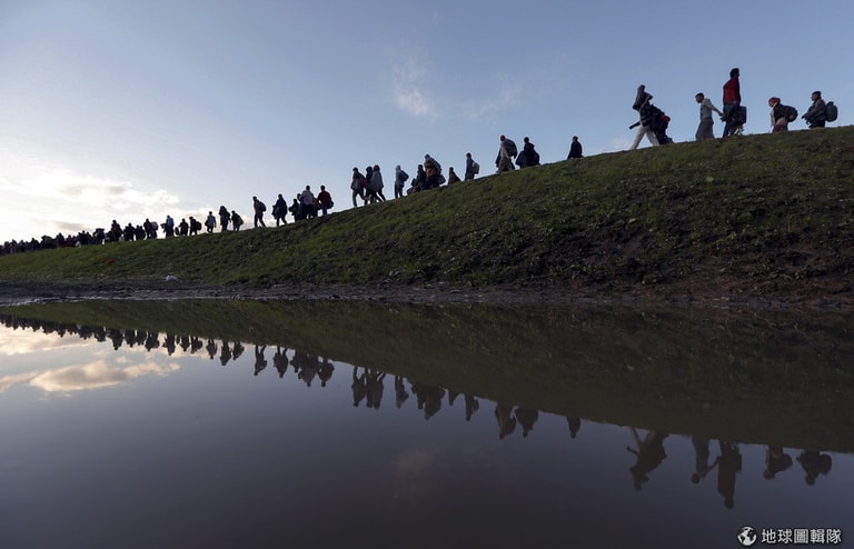 斯洛維尼亞當地,可見難民們正以徒步的方式往西歐前進。Photo Credit: Srdjan Zivulovic