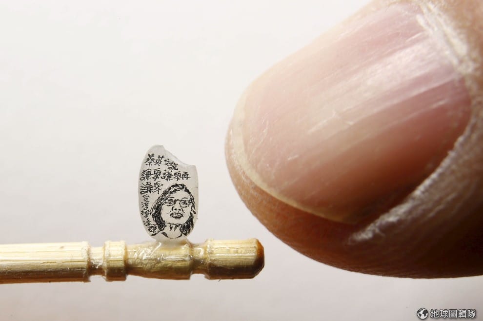 首圖故事:一粒白米上畫著台灣總統當選人蔡英文的肖像...