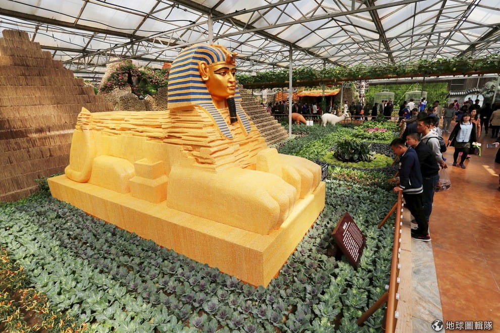 在山東省的農場大展上,一尊由穀物製成的埃及人面獅身像吸引路人駐足。過去,中國河北省也傳出「復刻版」的人面獅身像,當地民眾再也不必遠道飛往埃及讚嘆神秘的力量。
