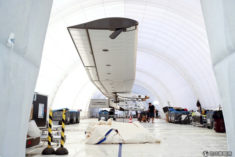 通常,當飛行方向固定好後他們能在機上稍微休息,座椅下方設有簡便的廁所供他們使用。這架太陽能動力機標準時速是每小時 45公里,在太陽光達到最強時也可以飛出兩倍以上的時速,機身是以碳纖維打造,重約 2,200公斤,相當於一輛中型汽車。