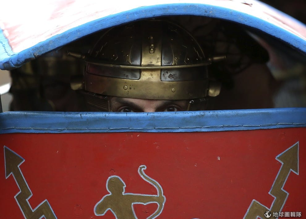 路透社隱身盾牌後的羅馬士兵。