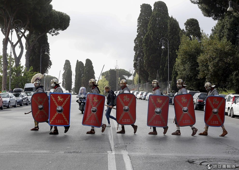 路透社走在大馬路上的古羅馬士兵。