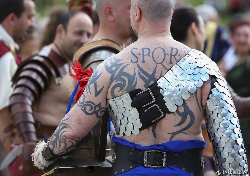 路透社打扮成戰士的民眾,參加活動者身上的裝扮都相當精細,每個人在活動期間都沉浸在古羅馬的氣氛中。