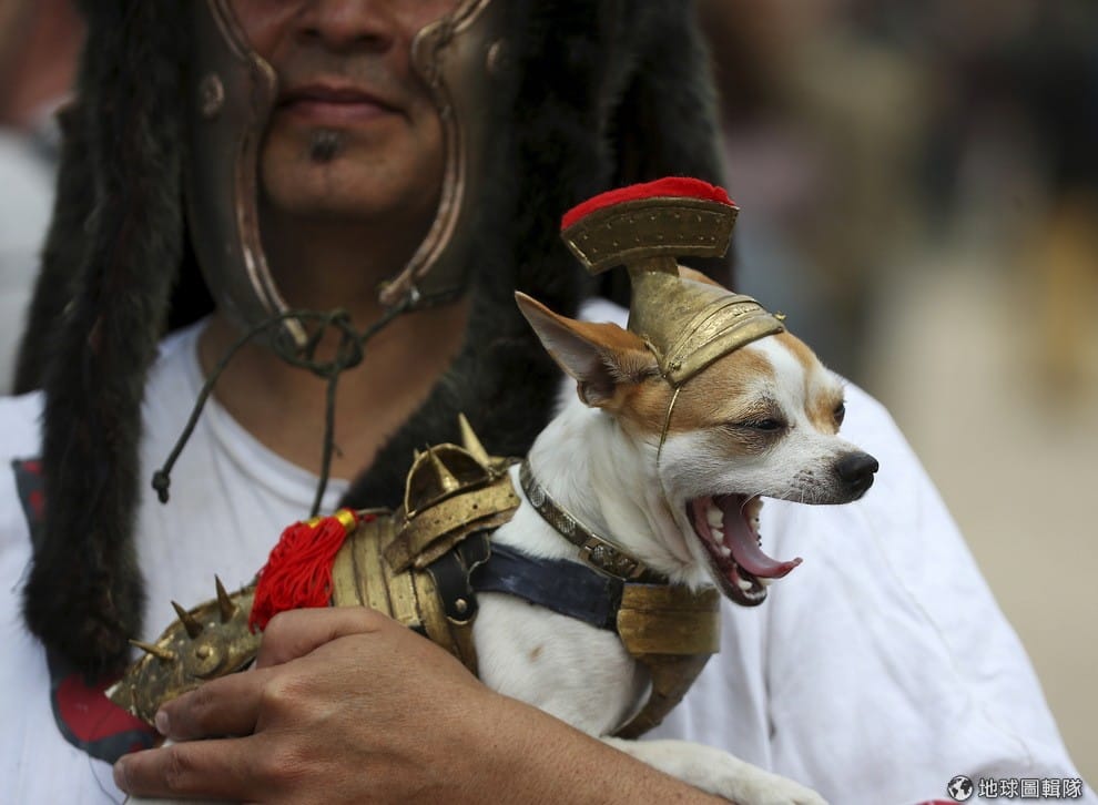 網友Max Perrini寵物也以古羅馬為題變裝。