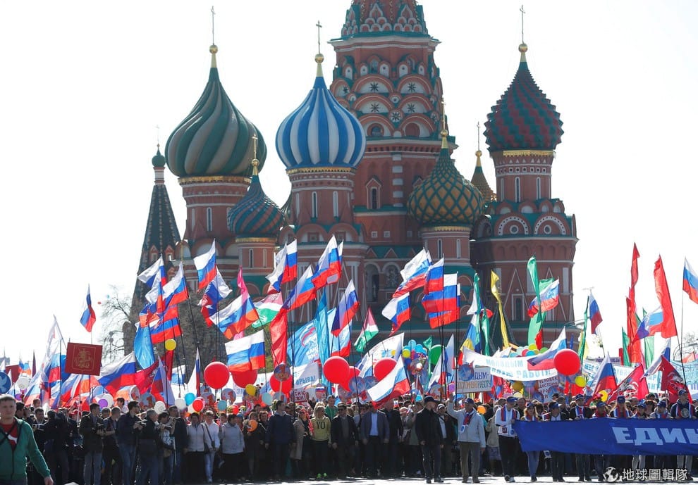 莫斯科市內的紅場上,可見 5月1日大遊行的隊伍。