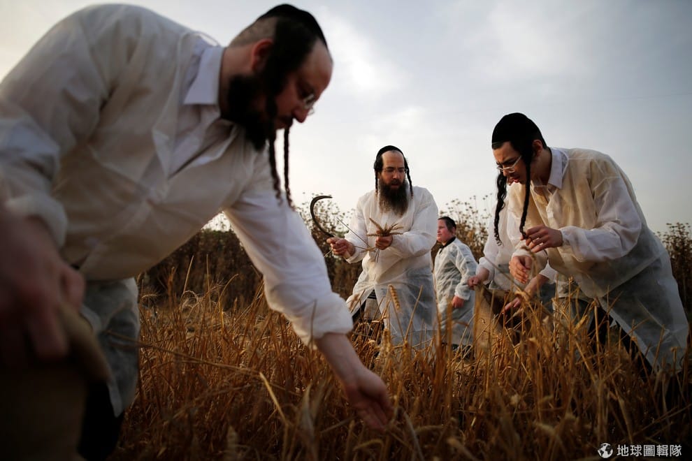屯墾區柯美米亞特(Komemiyut),信仰猶太正教的人們正忙著收割小麥,這些作物之後會用到逾越節必備的未發酵麵包中。