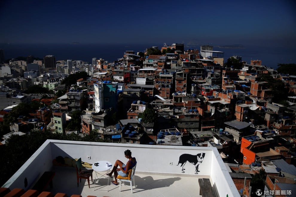 里約熱內盧當地的堤基飯店(Tiki Hotel)陽台上,遠望出去是坎塔加羅貧民區(Cantagalo favela),這裡是當地上千個貧民區中,少數幾個改建為飯店區的地方。隨著 8月份里約奧運將至,預計會有 50萬遊客湧入里約熱內盧,而像是這樣設置的飯店剛好提供遊客機會一覽曾被視為禁止進入的貧民區文化。