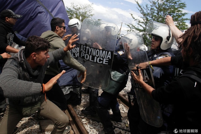 希臘靠近馬其頓的伊多梅尼市內,可見難民們與希臘警方發生衝突。