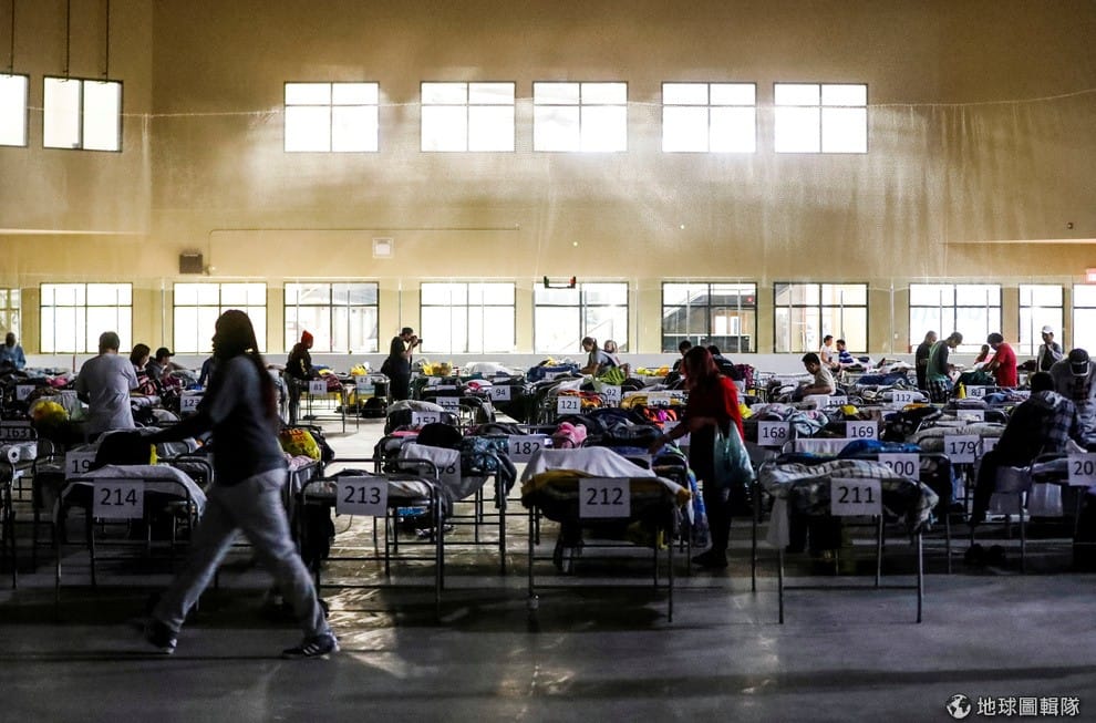 因為山林大火被迫撤離家園的人們,一起待在臨時收容中心。