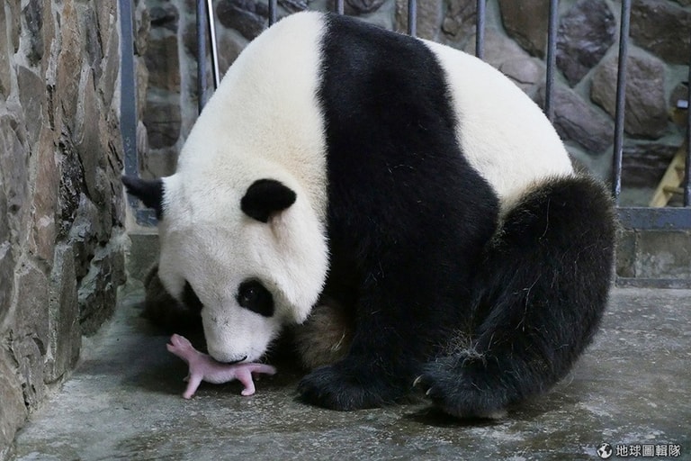 成都大貓熊研究基地,大貓熊「愛濱」親暱地靠著剛出生的寶寶,她在 6號凌晨 6時6分產下 2016年全球首隻貓熊寶寶,這也讓網友暱稱新生貓熊寶寶為「666」。