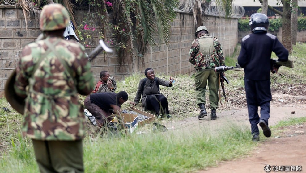肯亞的示威現場,鎮暴警察正在跟疑似反對黨成員的人說話。根據報導,這群示威者在距離肯亞的總統與國會大選還有一年多的時候,要求成立「選舉監督機構」。因為肯亞在 2007年選舉後爆發了暴力事件,2013年的選舉結果則具有爭議性,擔心這次選舉又會出問題的示威者要求成立機構,監督整個選舉過程。