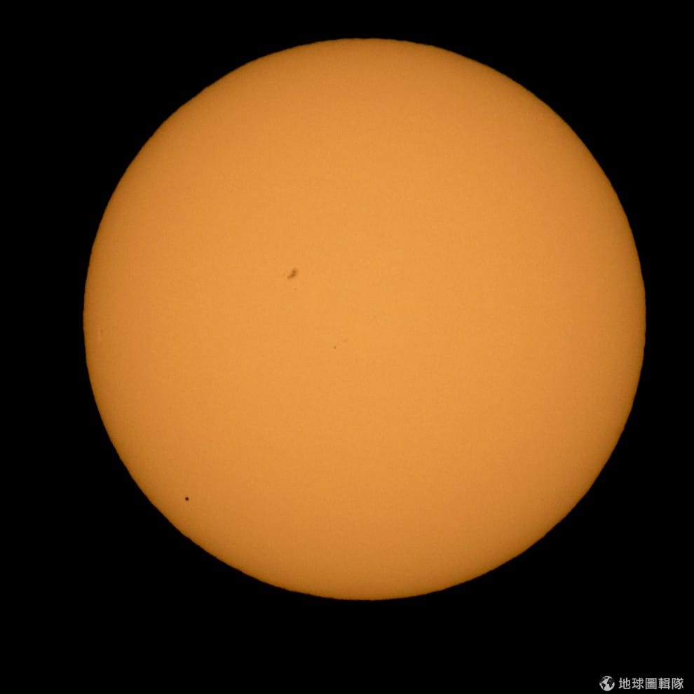 水星正飛過太陽表面,照片中的左下角可以看到彷彿小黑點的水星。水星在台灣時間 9號的時候穿過地球和太陽之間,這樣的現象稱為「水星凌日」,100年內只會出現 13次左右,下次要再欣賞就要等到 2019年。