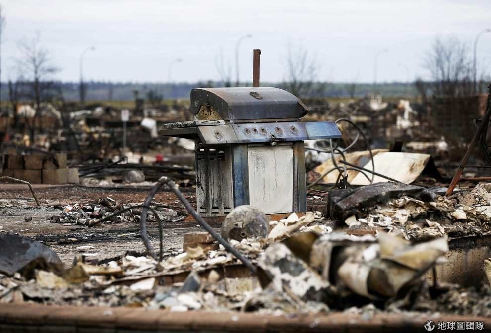 燒毀的烤肉架矗立在加拿大的麥克默里堡(Fort McMurray)。近日,加拿大中部艾伯塔省(Alberta)的麥克默里堡遭遇森林大火,影響面積大約 850平方公里,相當於三個台北市,當局已經疏散當地 88,000名居民,超過 1,600棟建物被火舌吞噬,熊熊大火仍不斷蔓延,甚至威脅到避難中心。