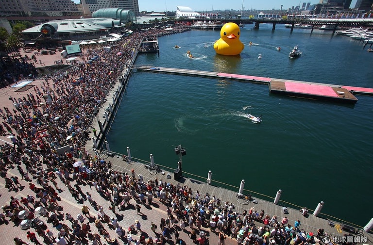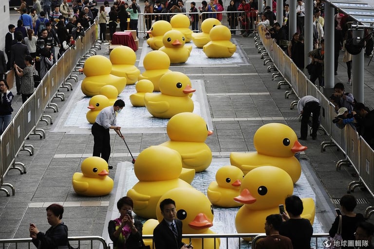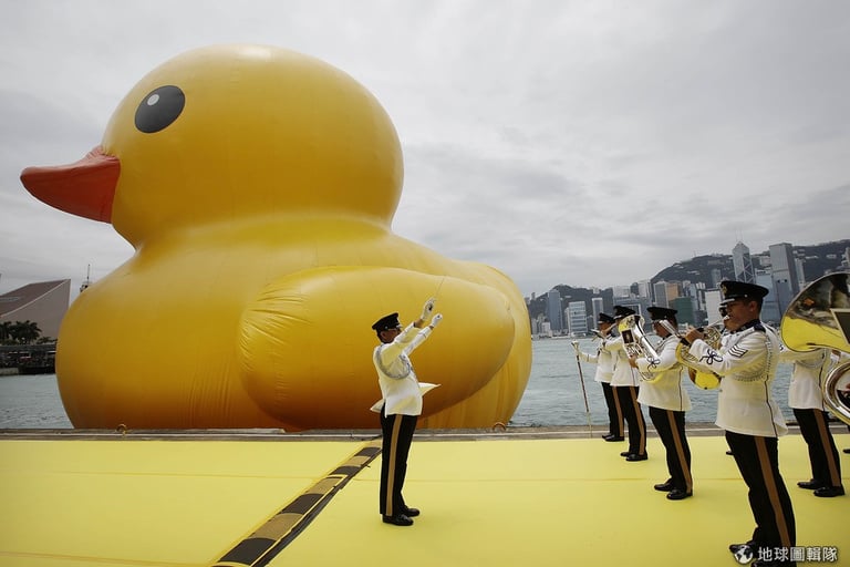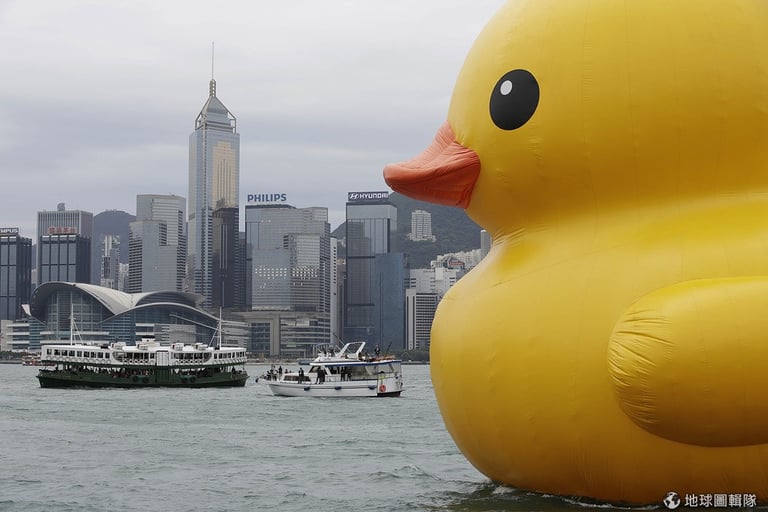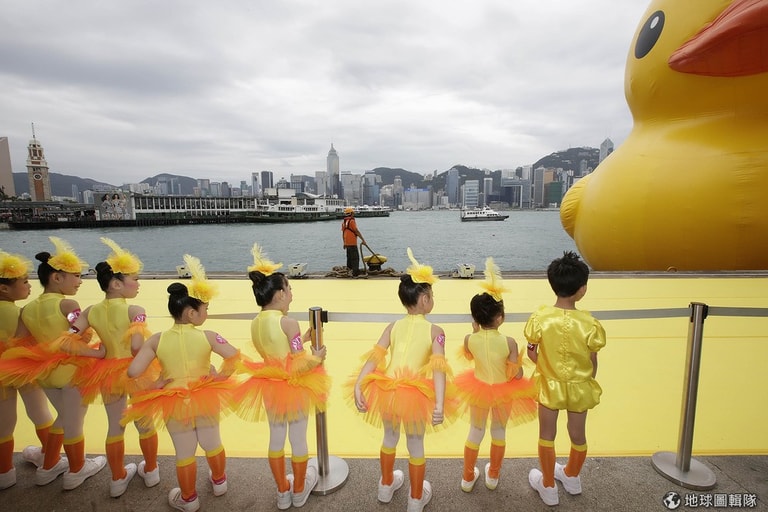 歷時6年,出自荷蘭藝術家霍夫曼(Florentijn Hofman)之手的超大塑膠鴨巡迴秀來到了香港站,當地的維多利亞港,像是瞬間被點亮一般,海水與鋼筋的灰藍色之間,蹦出了一點亮黃!