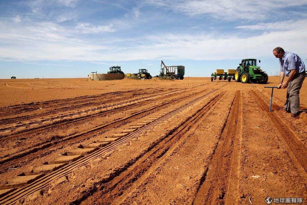 一名農夫正在檢查玉米田的土地。南非農村面臨 100年以來最嚴重的旱災,去年的雨量甚至達到有記錄以來最乾燥的一年,即使未來迎來夏天的雨水,對當地農夫來說還是太晚了。