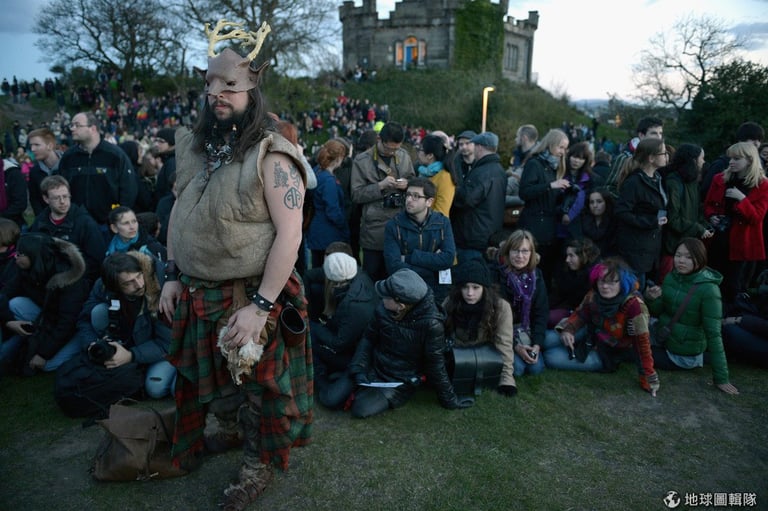 英國蘇格蘭的年度「朔日祭」(Beltane Fire festival)再度來臨,為了迎接5月夏天的到來,當地居民、遊客全湧到山丘上圍著焰火、隨著音樂手舞足蹈起來。
