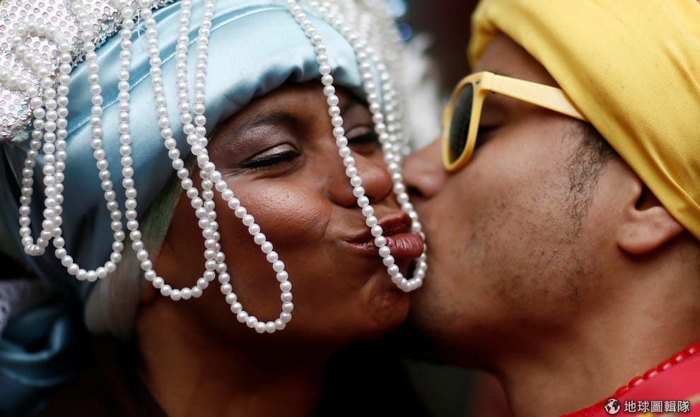 舞者互相親吻,等待「文化嘉年華」(Karneval der Kulturen)開幕。文化嘉年華是柏林的一個嘉年華會,來自不同文化背景的人會在這時候遊行、跳舞、表演戲劇和音樂,展現多元文化的美麗面貌。