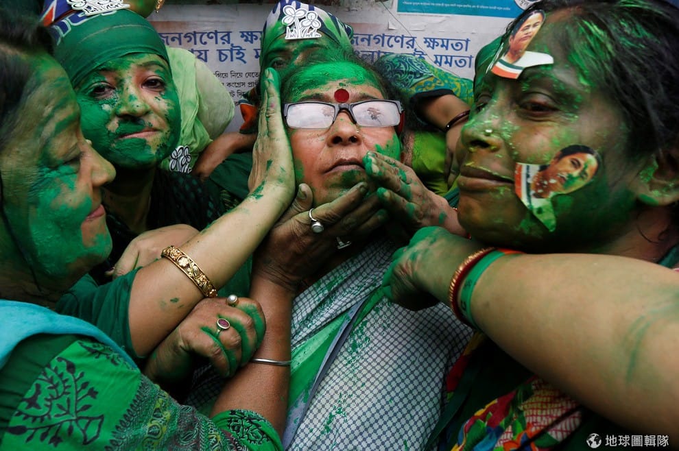 投票結果出爐後,崔納木國大黨(rinamool Congress)的支持者們開心慶祝。根據報導,印度的西孟加拉省舉辦議會大選,崔納木國大黨在 294席中拿到 211席,取得壓倒性勝利。