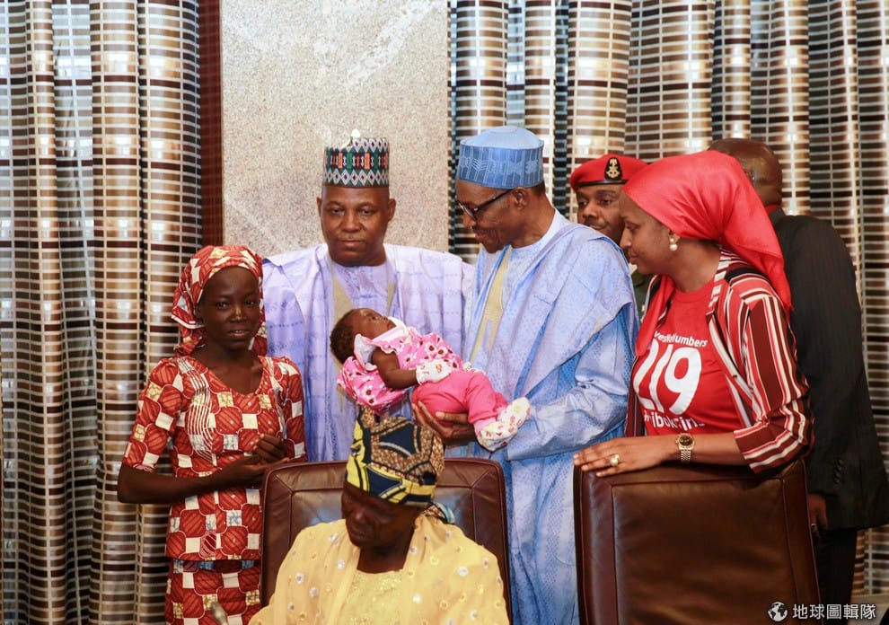 19歲少女恩凱琪(Amina Ali Nkeki)把孩子交給奈及利亞總統看。恩凱琪 2年多前遭恐怖組織「博科聖地」綁架,並生下孩子,日前終於被找到重返家人身邊。根據報導,被人在森林附近發現的恩凱琪渾身髒亂,像是很久沒有洗澡,懷裡還抱著 4個月大的孩子。